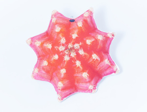 「緋牡丹(ヒボタン)」と呼ばれることも多いサボテンですが、実は横から見るとかたちが全然違っておもしろいんです。気になるかたは、ぜひ一度調べてみてくださいね。「本物の植物はどんなかたちをしているんだろう?」こういった好奇心につながるのが、たにくっしょんの魅力のひとつ。部屋のインテリアに映える鮮やかなピンクです。