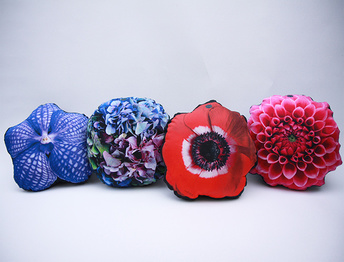 見事な大輪のダリアをそのままクッションに。お部屋が一気に明るくなりますね。ふだんお花を飾っているだけだと見逃してしまいそうな、均一に咲き乱れる花びらに思わずうっとりしてしまいます!
