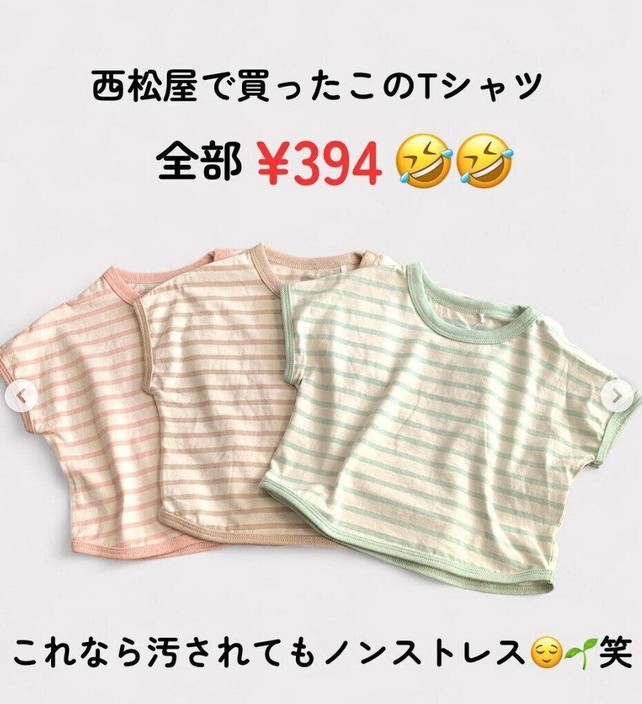 こちらは西松屋で販売されている、ボーダー柄の半袖Tシャツ。1点あたり394円というプチプラ価格なので、汚れがちな保育園着にぴったりのアイテムですよね!夏定番のボーダー柄で、手持ちの服と合わせやすいのも嬉しいところ。cocomama.045さんのように色違いでゲットしておけば、毎朝コーデに悩む必要もありませんね♪