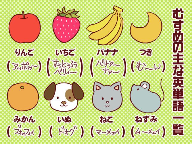 現時点でもなんだかんだ英単語に触れる機会があるので、りんごは『アッポゥ~』だし、いちごは『すぅとぅロォウベリィ~』だし、バナナは『バナァ~ナ~』だと知っている。英語の歌も『えいびーしーでぃーいーえふじー、えっちあいじぇいけいえるえむびー』と歌える。後半があやしい。英語の歌やら単語を発するたびに私達両親が大仰に褒め称える(心はこもっていない)ので英語にもノリノリである。