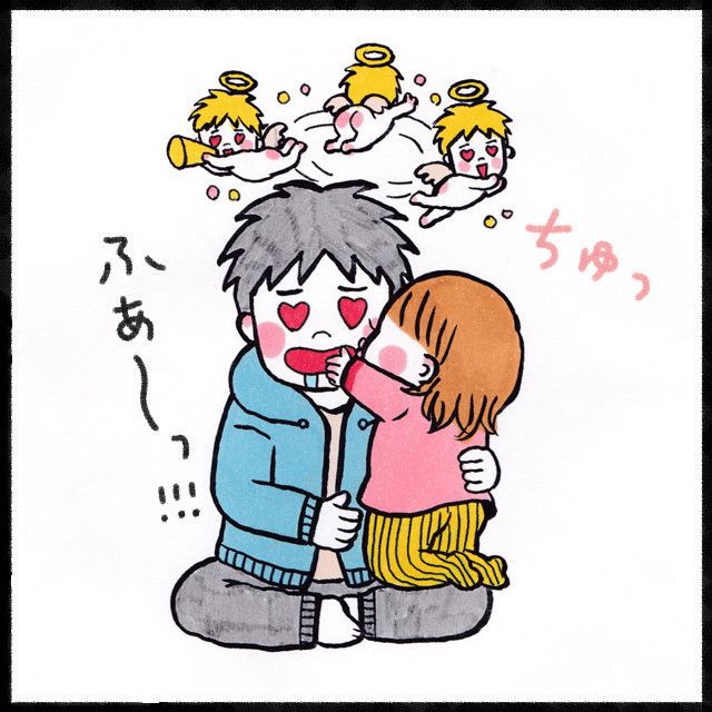 すーちゃんの『チュー』にひーくんも照れながらニヤニヤ。