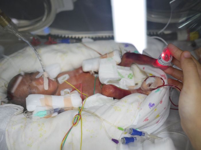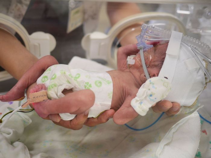 「朋克は865gで生まれ、すぐにNICUに入院しました。
