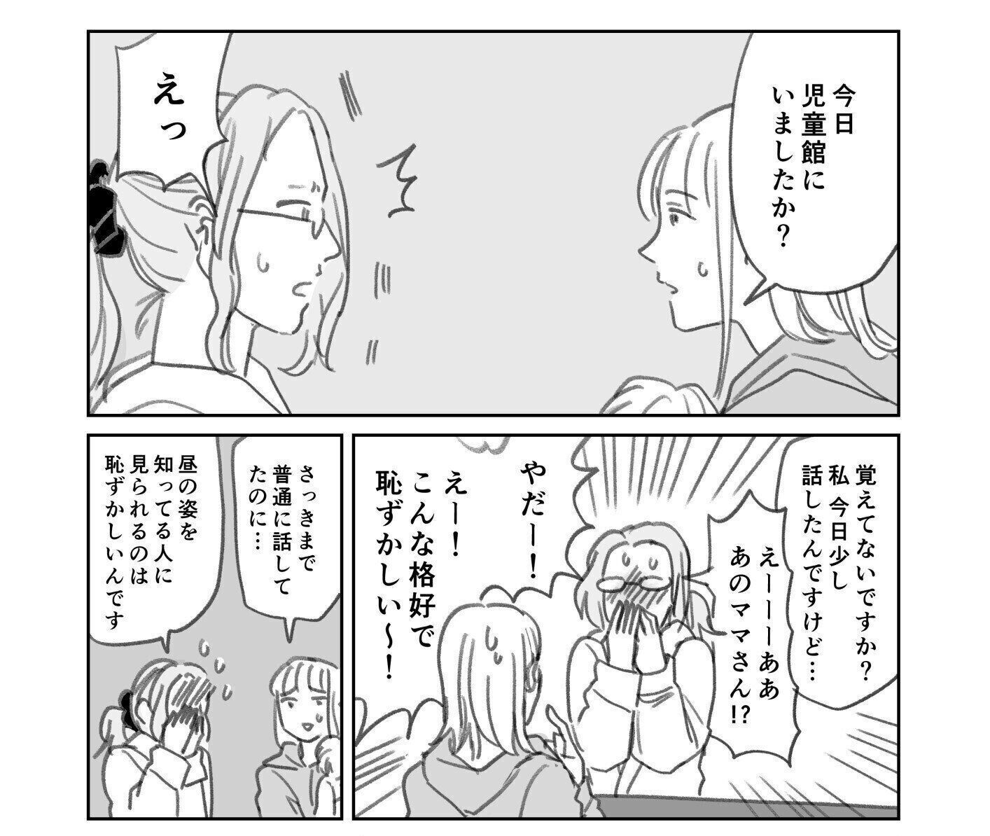 ――まんがの中で、児童館ではすごくきれいにしているママが、「よなきごや」ではすっぴんで髪はぼさぼさ、洋服もヨレヨレ、といった話がありました。
