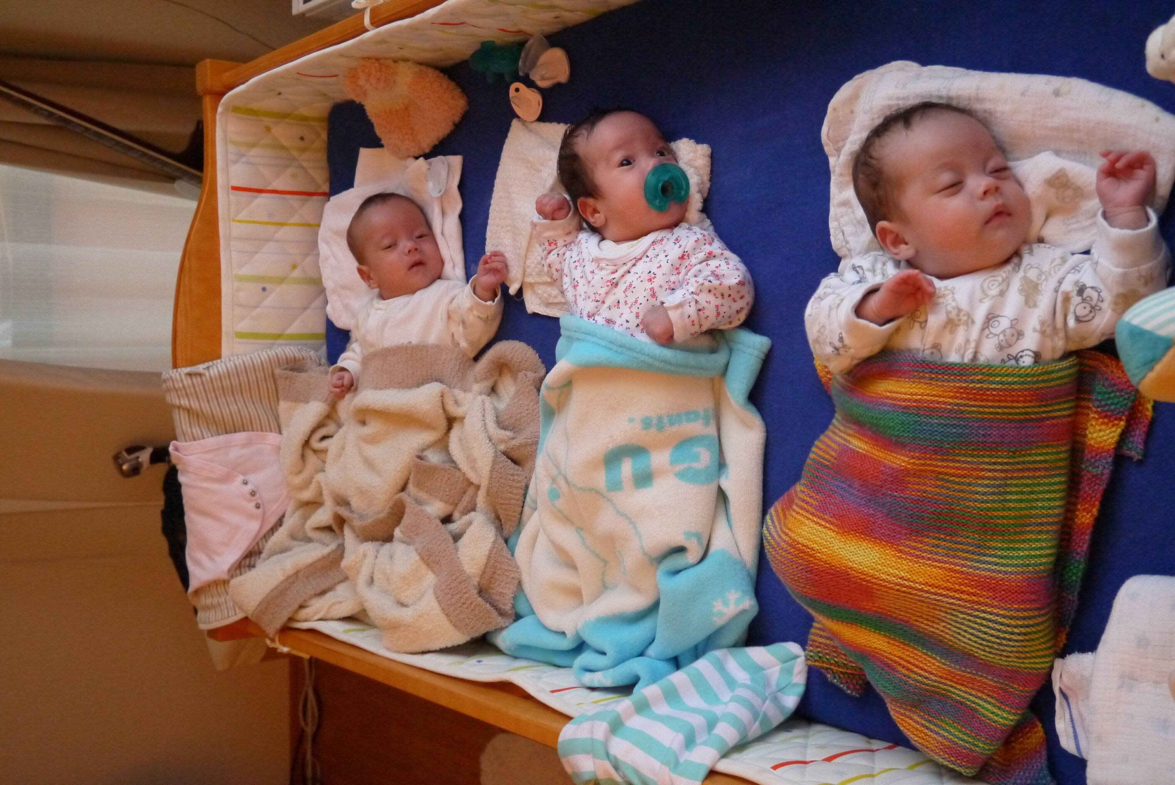 やっぱり三つ子を妊娠・出産するのは大変で、妊娠26週目から約2カ月入院することになりました。妊娠29週目に陣痛が来てしまい、緊急帝王切開で出産することになりました。妊娠37週から41週6日までの間のお産が「正期産(せいきさん)」と言われ、赤ちゃんの体の機能も十分に発達し、スムーズに母体の外の生活にも慣れると言われています。妊娠29週での出産はかなり早産でしたが、子どもたちは3人とも元気に生まれてくれました。