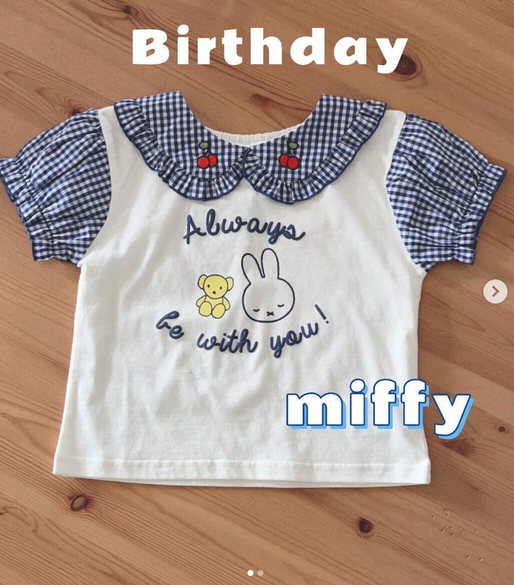 こちらはUmekoさんがバースデイでゲットした、ミッフィーの半袖Tシャツ。まるでギンガムチェックのシャツをレイヤードしたようなデザインが、とてもオシャレでかわいいですよね!こちらは1,309円で購入できるとのこと♪