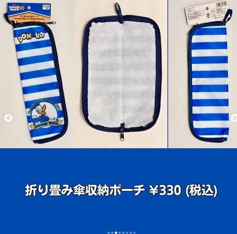 kume_naraさんが購入した330円商品の折り畳み傘収納ポーチは、使用後の濡れた折り畳み傘の持ち運びに便利!ドナルドダックのイラストがかわいくて、憂鬱な雨の日も楽しくなりそう♪ファスナーを全部開くとフルオープンになり、中までしっかりと乾かせるのも嬉しいポイント。