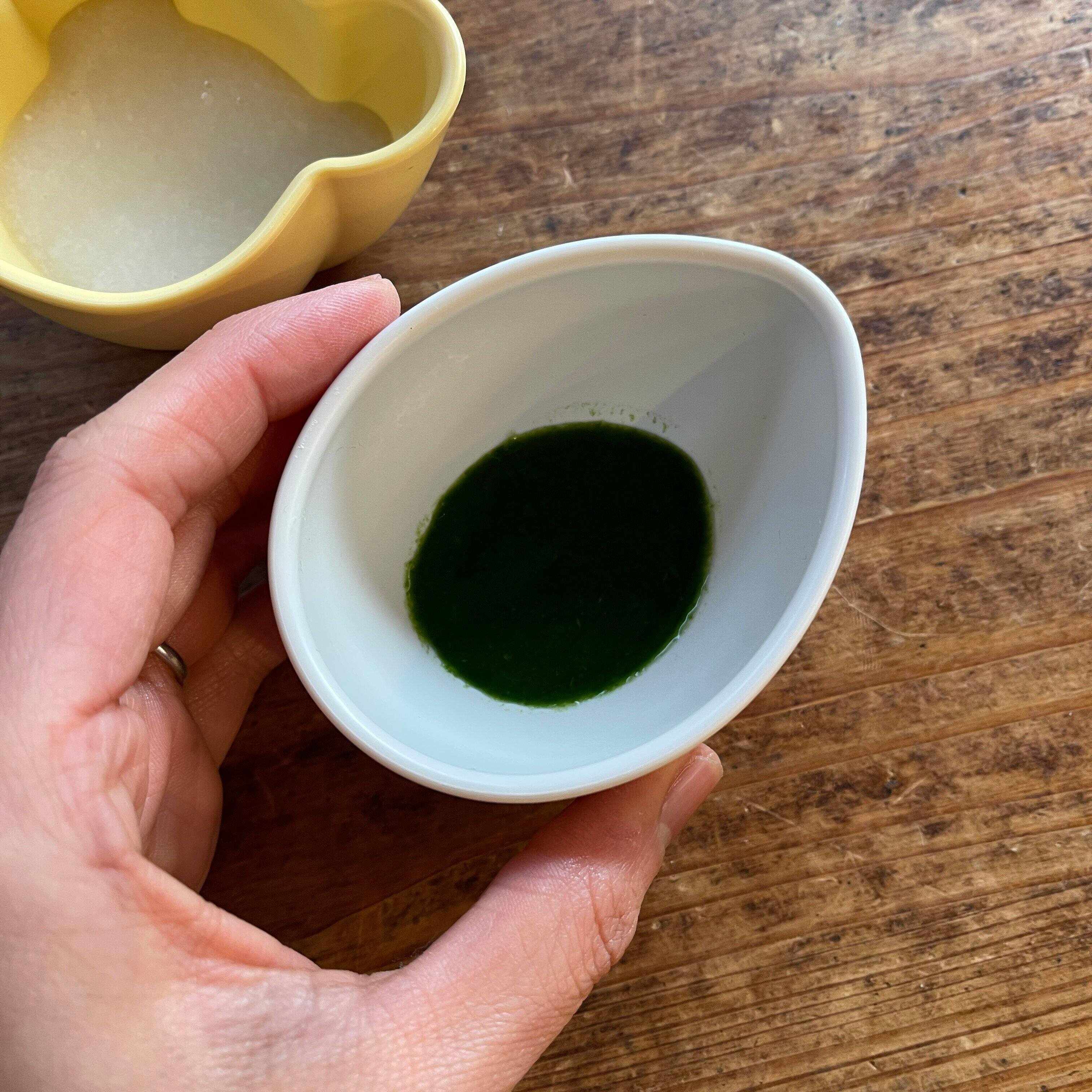 大量に作ったペーストは小分けにして冷凍。これが本当に便利で、毎回作る手間が省けます。シリコン製の製氷皿に入れて凍らせると、使いたい分だけ簡単に取り出せるのでおすすめ。この製氷皿はやわらかいから、どんな食材を冷凍させても取りやすいんです。