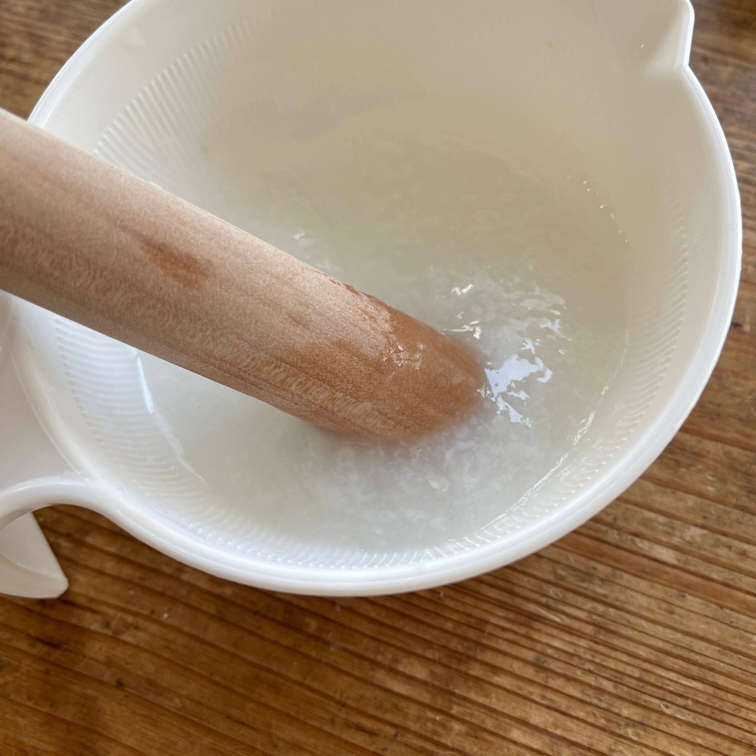 忙しいときにやってみたら便利だったのが、おかゆをすり鉢に入れること。すりつぶしながら食べさせてみたら、とっても楽でやみつきに。