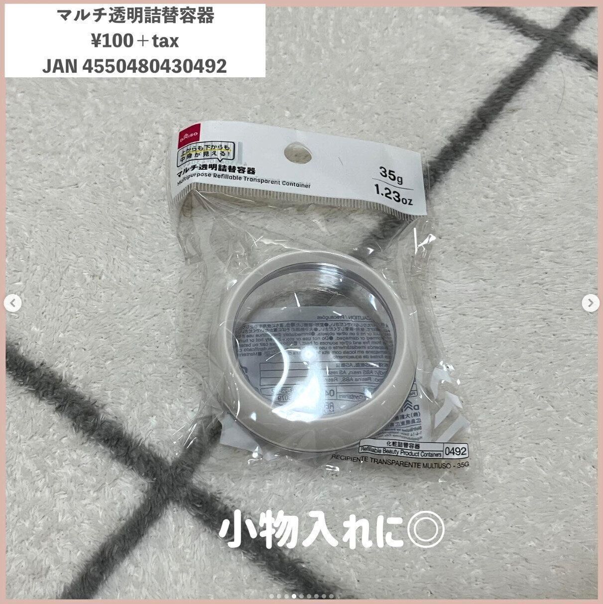 akaneko715さんは「マルチ透明詰替容器」を購入。透明なので、上からも下からも中身が見えて良いですよね!小物入れとして使うのがおすすめだそうで、こまごましたものもスッキリ♪ コンパクトなので、持ち運びにも便利ですね。