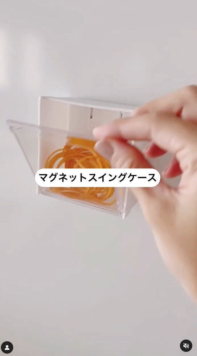ゆっかさんは「マグネットスイングケースホワイト」を購入。輪ゴムやクリップなどの収納におすすめなんだとか。マグネットでくっつくので、サッと取り出せて便利♪ 使用頻度の高いものを冷蔵庫などに貼り付けて使用しても良いですよね。
