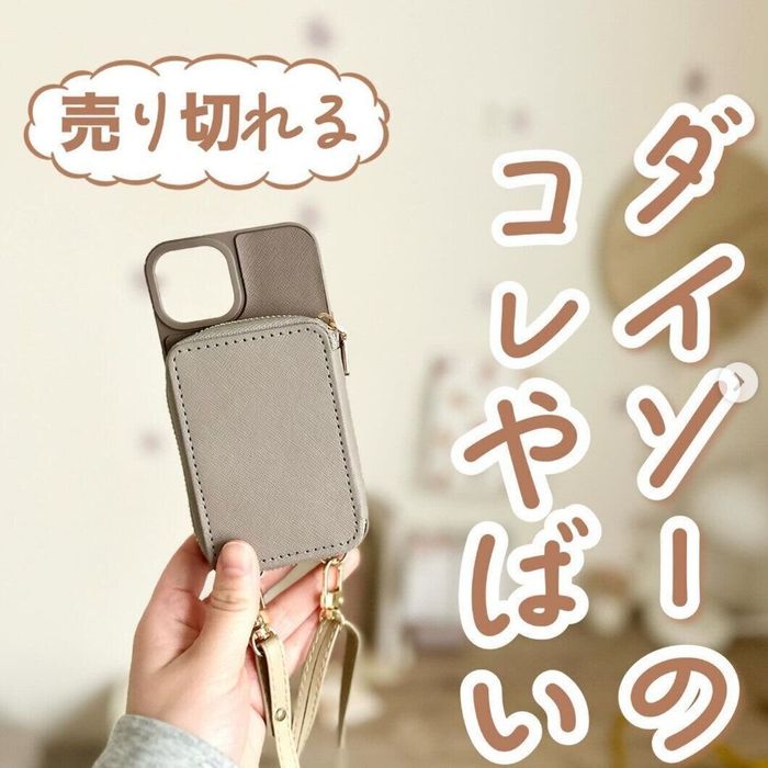 こちらはrisaroom28さんがダイソーで購入した「マイクロバッグ付スマホケース」。ばんそうこうや鍵などの小物が入れられる収納付きのスマホケースなんだとか。くすみカラーで見た目もおしゃれで、550円とは思えないクオリティですよね♪ この方は別売りのショルダーストラップと組み合わせて使っているようです。