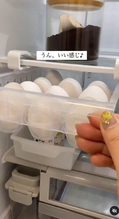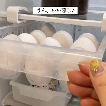 背の低いものを置いた場合、上の段の間が無駄なスペースになってしまいますね。縦の空間をうまく区切って使うことで無駄なく収納することができますよ。ダイソーの220円商品「吊り下げ冷蔵庫収納ケース(卵用)」は、卵が12個も入れられます。挟み込みホルダーと吸盤とでしっかりとホールドされて落下もしにくく安心ですね。