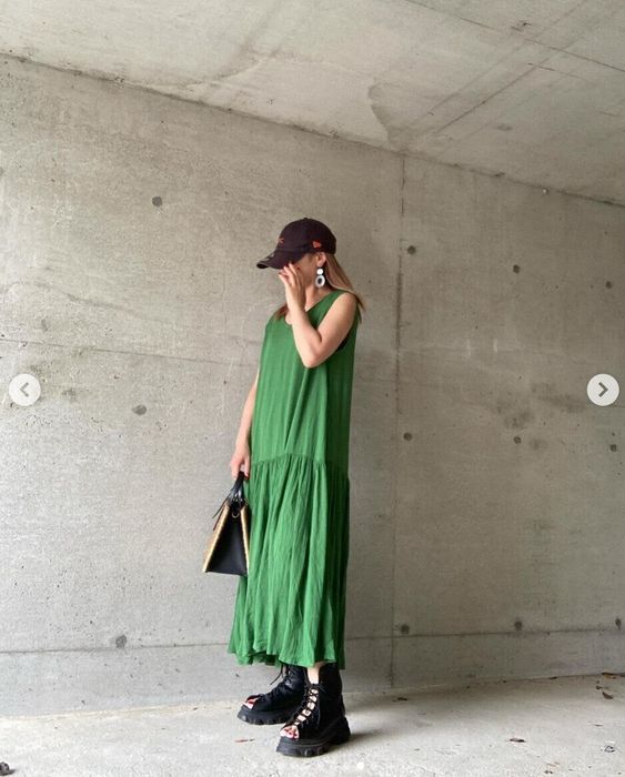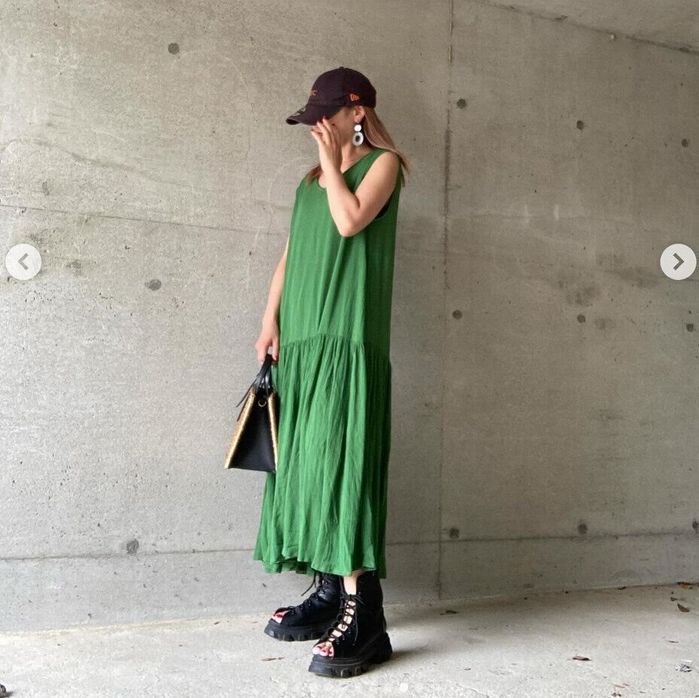 こちらのワンピースは、_______shino219rrさんがゲットしたもの。低身長向けのサイズで、丈が短めなんだそうです。前後2WAYで着用できるとのことなので、コーデの幅も広がりそう!グリーンの色味が夏っぽくて素敵ですね♪