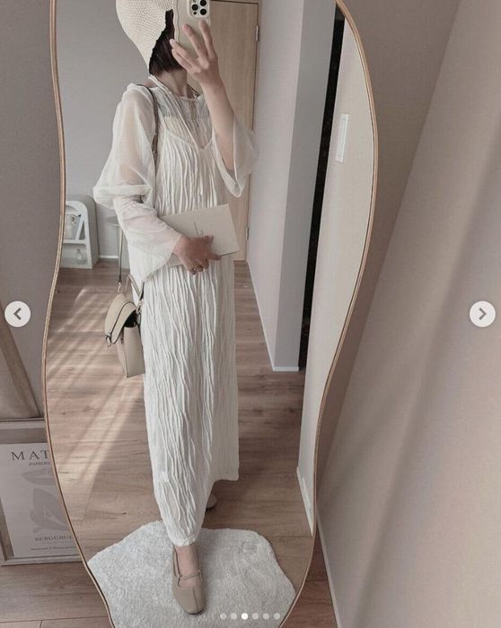 こちらは、しまむらのオリジナルブランド「tal.by yumi.(タル バイ ユミ)」のキャミワンピース。naa.gramさんは、同じくしまむらで購入したシャーリングブラウスと合わせたんだそう♪ このコーデなら、室内の冷房対策や紫外線対策にもなりそうですね◎