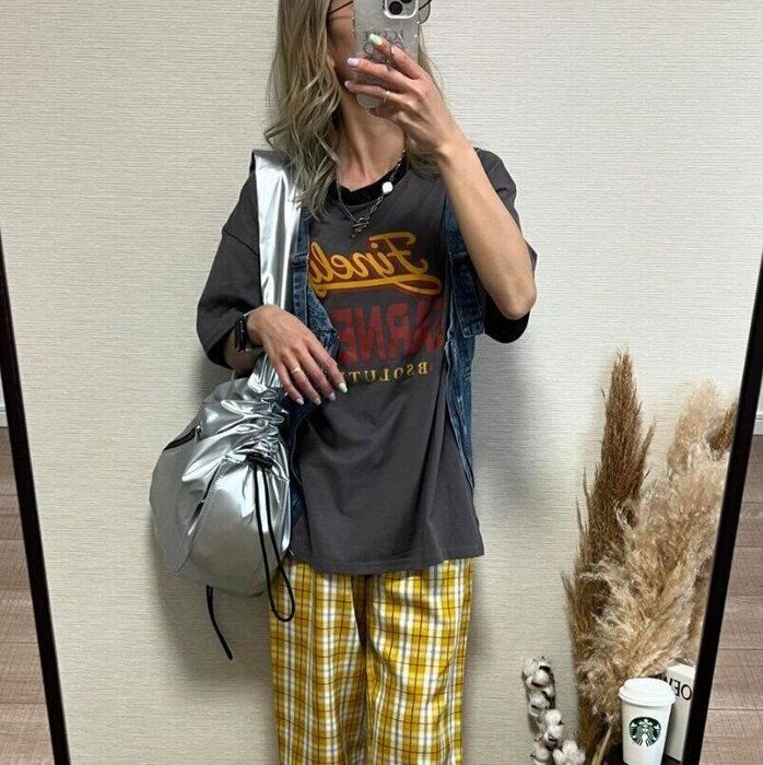 こちらは、しまむらのオリジナルブランド「tal.by yumi.(タル バイ ユミ)」のキャミワンピース。naa.gramさんは、同じくしまむらで購入したシャーリングブラウスと合わせたんだそう♪ このコーデなら、室内の冷房対策や紫外線対策にもなりそうですね◎