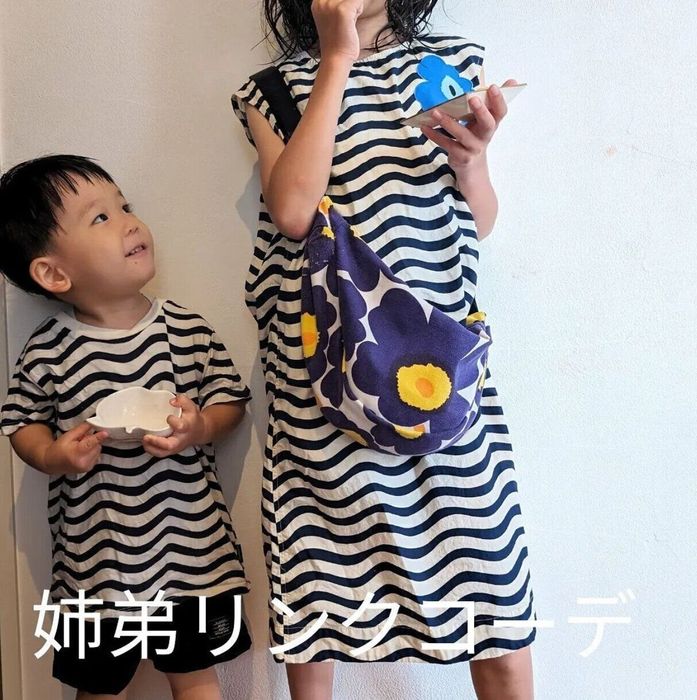 azu...さんは、グラフィックTシャツとワンピースを購入。姉弟のリンクコーデ、とってもお似合いですよね!パンツをネイビーや黒にしてモノトーンコーデにしても素敵ですし、あえて色物を合わせるのもオシャレ♪ 今回のマリメッコシリーズは、レギンス・ワンピ・Tシャツなど、同じ柄でそれぞれアイテムがそろっているので、リンクコーデは特におすすめです。