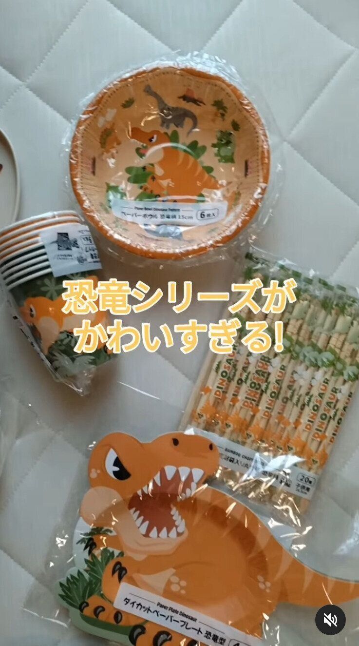 sironekosandazoさんは、セリアでペーパープレートや袋入り竹箸などの恐竜グッズを購入したのだそう。使い捨てできるアイテムは、キャンプやBBQなどで使えて便利ですよね。存在感のある恐竜デザインでキッズも喜びそうです♪