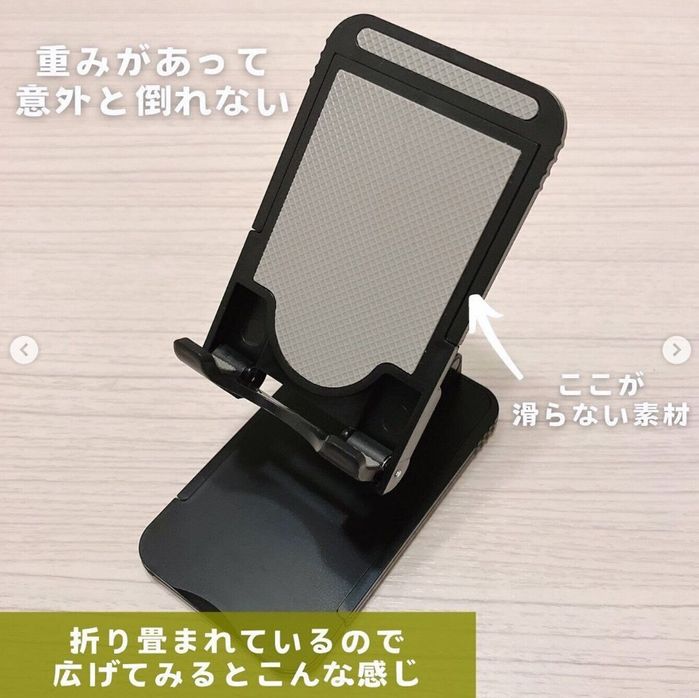 こちらはKeiさんが「話題になっていたので購入してみました。」という3COINSの「スマホスタンド」。重みがあって倒れにくく、とても使いやすいのだとか。スマホを置く部分に滑り止めが付いていたり、充電器をさしたまま使えるような形状になっていたりと優秀そうです◎