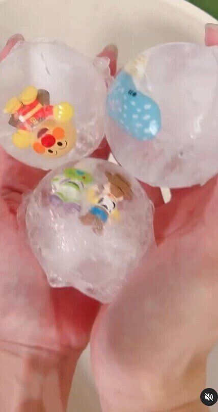 りれままさんは、ダイソーで購入した丸型製氷器を使って小さめのフィギュアを水とともに凍らせて氷おもちゃを作成。まん丸の氷が手軽に作れて子どもたちも喜びそう!色水を使えばカラフルな氷を作ることもできますよ♪ 手に持つとひんやり冷たくて気持ちいい!溶けていく様子を観察するのも楽しいですね。