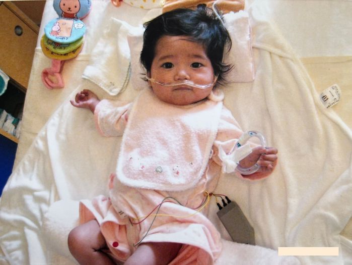 生まれつき心臓の左心室が小さい「左心低形成(さしんていけいせい)」という病気を持って生まれた果歩さん。そのままでは血液中の酸素が少なくチアノーゼの状態が続いてしまうために、生まれてから1歳半までに少なくとも3回の手術を行う必要がありました。果歩さんは生後2日で1回目、生後3カ月で2回目の手術を行います。