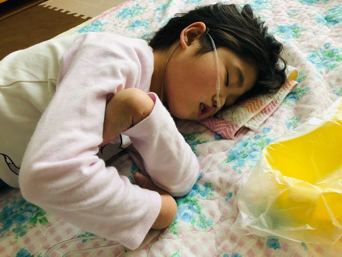 「8歳の秋ごろにペースメーカー変更後具合が悪くなり、4カ月入院をしてやっと退院したら帰宅後から嘔吐(おうと)が止まらなくなり、3日でまた入院することに。たんぱく漏出性胃腸症という病気を発症してしまいました。たんぱく漏出性胃腸症は、血管内に水分を保つ役割のあるたんぱく質が胃や腸などの消化管からもれ出てしまい、むくみや重度の脱水を引き起こす病気だそうです。