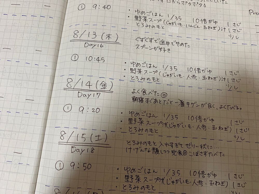 1歳くらいまでは治療用ミルク+野菜スープ。これからごはんが食べられるようになるのかあせりもあり、不安だったそう。