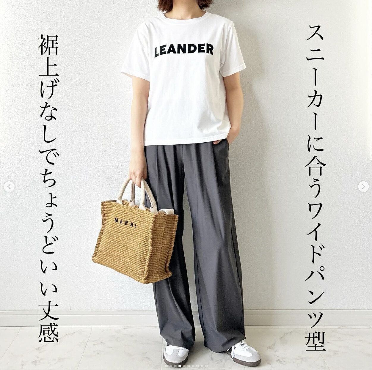 TOMOMI SUZUKIさんは、ユニクロにて「ウルトラストレッチエアリズムワイドパンツ」を購入。エアリズム素材なので、汗をかいてもサラッとした肌ざわりで、暑い日も快適にはけます。シルエットのキレイなワイド型で、サンダルもスニーカーも違和感なし♪ スポーティーにもキレイめスタイルにも使えるので、かなり便利ですよ。