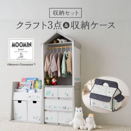 ▼ムーミンベビー 赤ちゃんのお世話ステーション4点セット(チェスト+ハンガー+シェルフ+ケース)