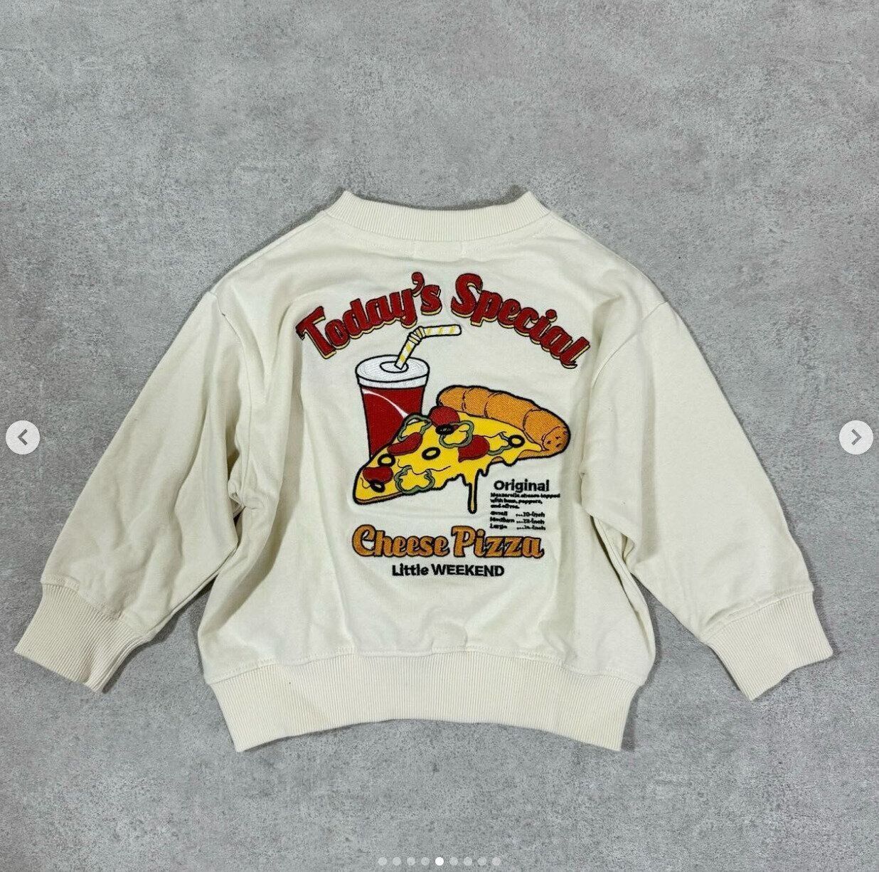 こちらはkei.ena2さんが一目ぼれしたという、Little WEEKEND(リトルウィークエンド)のピザ柄トレーナー。インスタで見るよりも、実物のほうが刺しゅうがかわいかったんだそう♪ 最近ピザが好きだというお子さんも、喜んでいたんだとか!