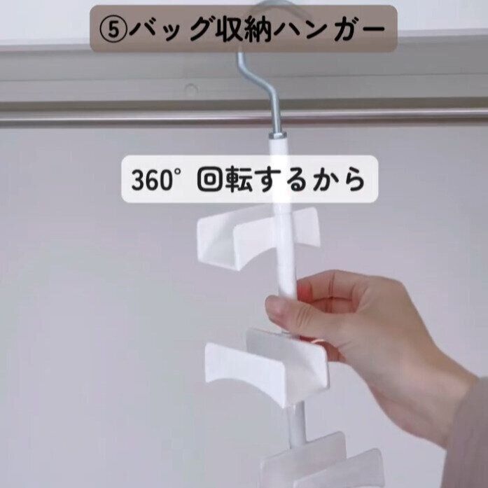 回転するから、バッグが重ならずにすっきり!「バッグ収納ハンガー(220円)」
