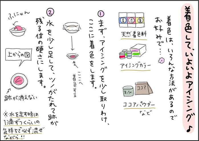 最初のうちはアイシングにどのくらい水を足したらいいのか、、