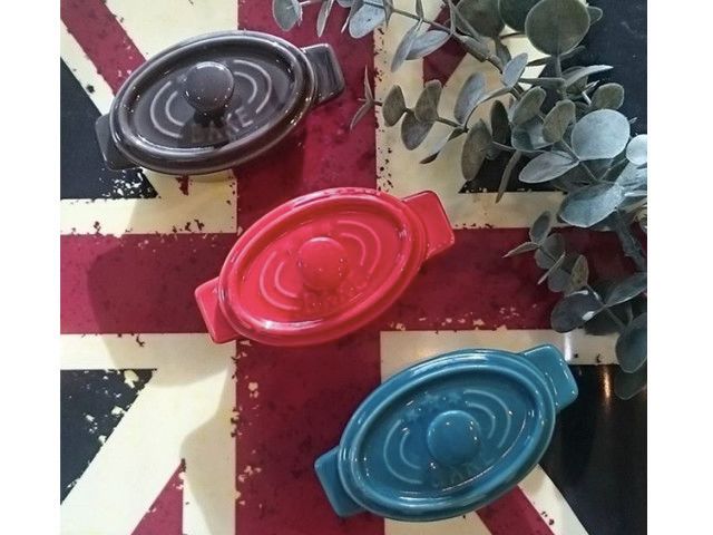 人気ブランド風のミニココットは、丸型と楕円型の二種類。kanipangramさんは、ディップソースなどを入れて使っているそう。オーブンもOKなので、本格的なお料理用としても使えます。