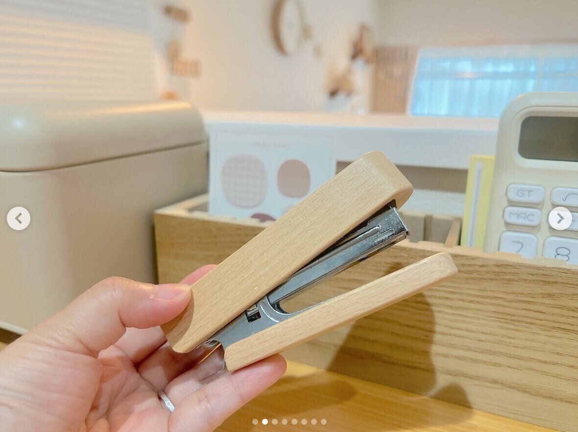 こちらはaki___.ieさんが550円で購入した3COINSの「ステープラー」。木のナチュラルな雰囲気がとってもおしゃれですよね!文具スペースの模様替えのためにほかにもいろいろなものを購入したそうですが、「どれも可愛くてテンション上がる」とのこと♪