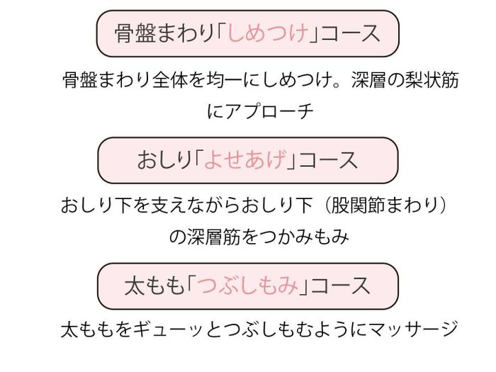 おすすめ理由1)プロに学んだ別格マッサージで骨盤おしりまわりの筋肉ケアができる!