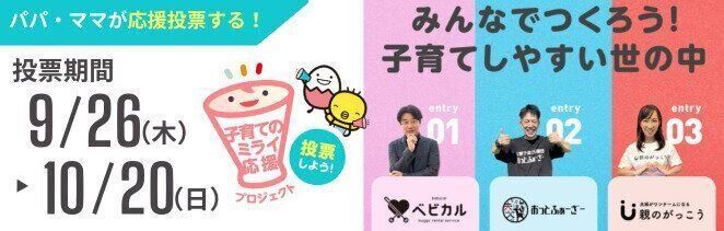現在たまひよでは、生み育てやすい社会の実現に向けて活動している3つの団体にフォーカスをあてた「子育てのミライ応援プロジェクト」を実施中。応援したいと思う団体を1つ選んで投票してください! 今回お話を聞いた「NPO法人おっとふぁーざー」もエントリーしているので、チェックしてみてください。