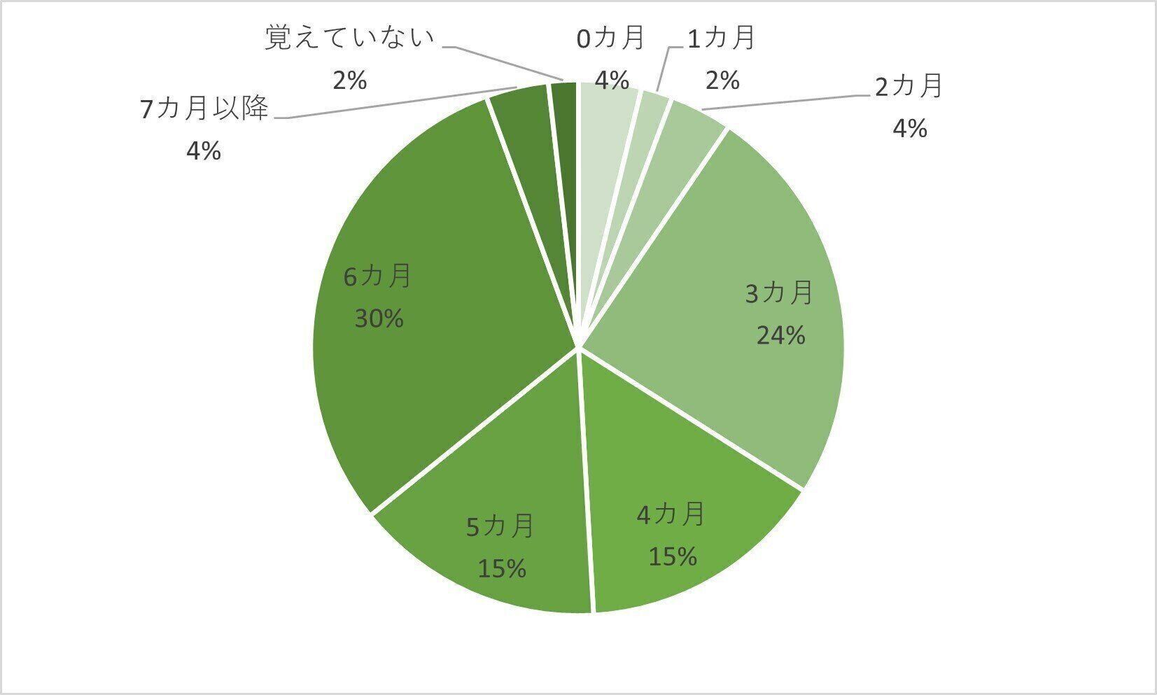 アンケートの結果を見ると、かぶるタイプの肌着に変更したタイミングでいちばん多かったのが、6カ月のときで30%。次いで3カ月のときの24%でした。