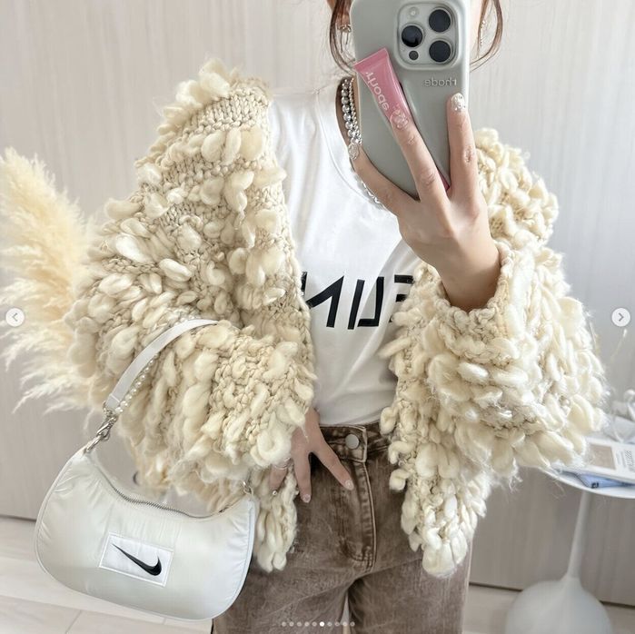 ari_undyedさんは、ZARAにて「テクスチャー ニットカーディガン(13,590円)」を購入。シルエットも可愛く、前のホックを止めたらニットっぽくも着られるとのこと。もふもふで見た目も激かわ!寒い時期にはたくさん着たいですね♪
