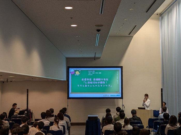 予約でいっぱいになった「たまひよ学級」では、アベンヌメディカルアドバイザーの美容皮膚科医・髙瀬聡子先生による「入浴後10分が勝負! ママと赤ちゃんのスキンケア」と題した講演が行われ、赤ちゃんの肌トラブルについてや、スキンケアの方法、さらに忙しい育児中におけるスキンケアを通した幸せ時間についてのお話などに、多くのママ・パパが耳を傾けていました。