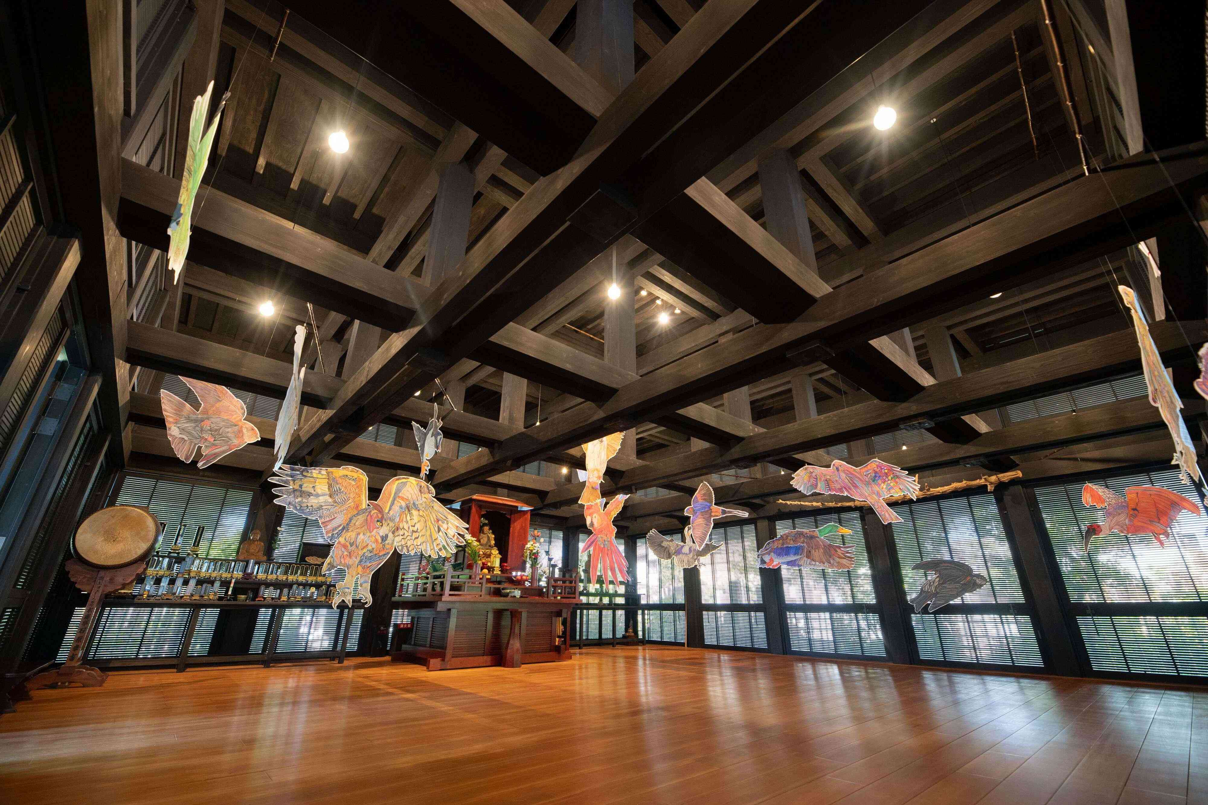 2024年の「はるすなお展」で勝林寺の本堂を飛ぶ鳥たち。たくさんの人が目を奪われていたそうです。
