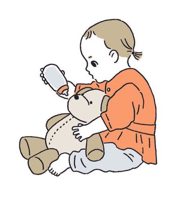ママ・パパがすることを、なんでもまねしたがる時期。ママやパパのまねっこをして遊ぶことは、やがてごっこ遊びなどのなりきり遊びや、創造する遊びへとつながっていきます。親子で一緒のことをしている喜びに共感してあげると、赤ちゃんの意欲はさらにアップ!
