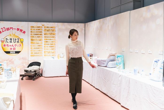 公式たまひよインスタグラマーの横町ももこさんは、展示品を見ながら「抱っこ紐やベビーカーなど、使ったことがあるものがたくさんあります!」と興奮。一方で、知らなかったアイテムも興味深く見ていました。