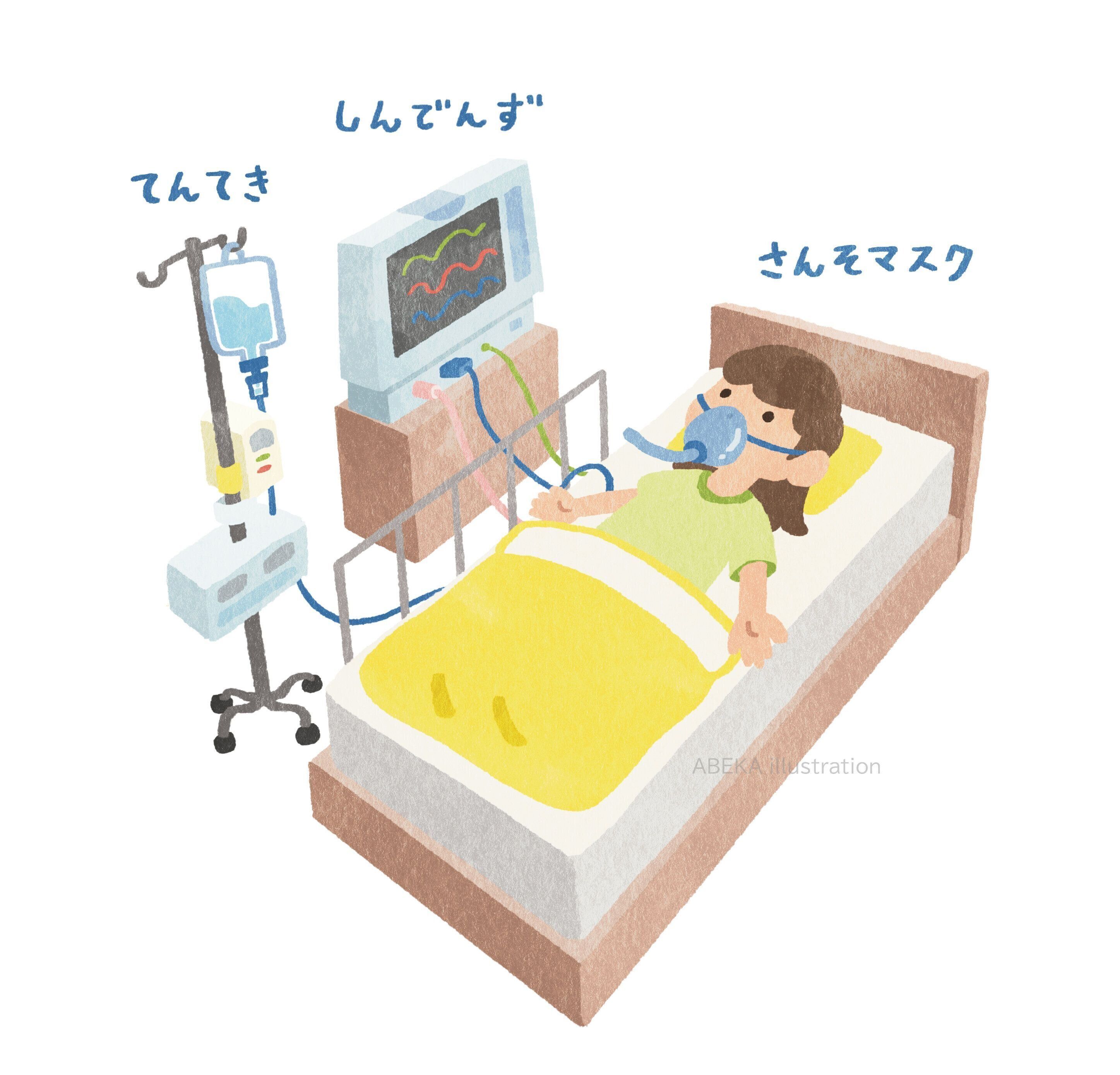 酸素マスクにシールを貼り、手術室まではイラストを探しながら・・・。手術の不安を乗り越える