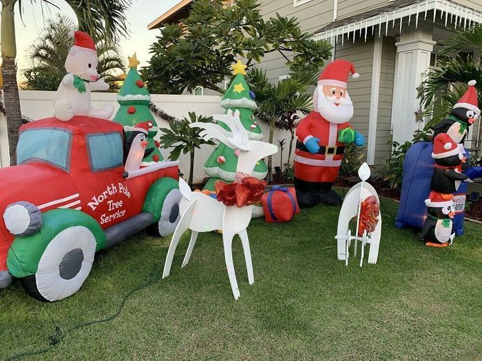 もうすぐクリスマス!気温が下がると、気分を上げるためにツリーをだしたり、飾りをつけたり。家の中はもちろんだけど、ハワイの家は外の装飾も全力です。パームツリーにライトをつけて、窓枠にリボンやガーランド。サーフィンしてるサンタさんの置物とかあるお家もあって、夜のお散歩がとっても楽しい!