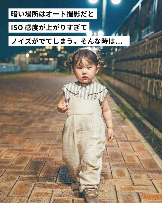 ISOは上げすぎないように気をつけて。F値は絞りを開放にして撮影するとノイズを軽減できます