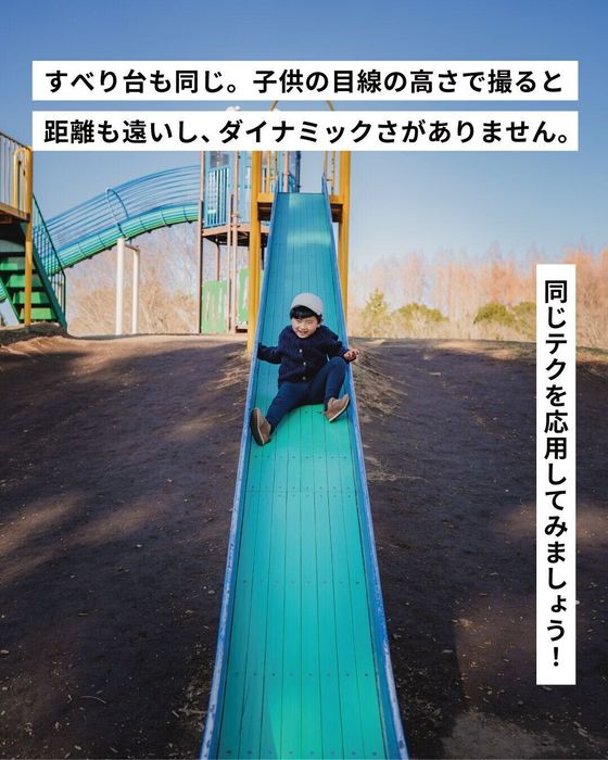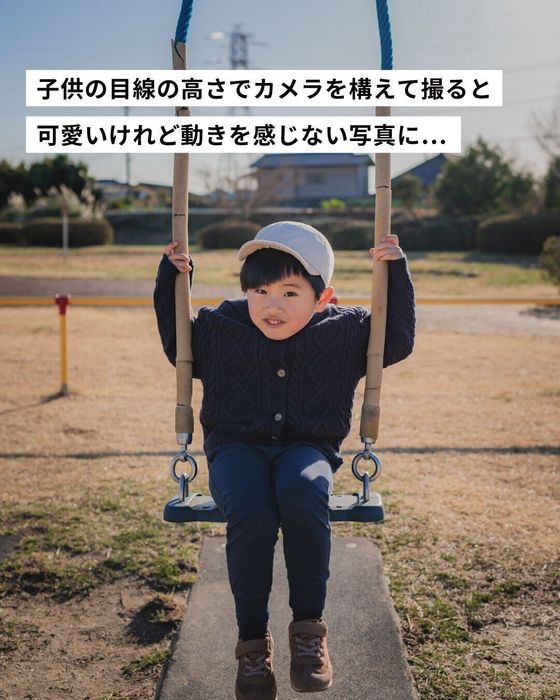 子どもの目線の高さだと動きを感じない写真になりがち。そんなときは…