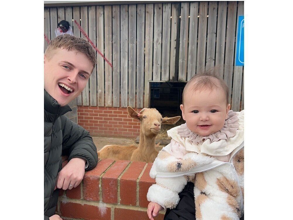 イギリスの動物園や牧場は一つ一つのおりが広くて動物優先に作られているため、全部を見て回るにはかなりの距離を歩かないといけなかったり遠くからしか見えなかったり、ときには木や草に隠れて見えないこともあるのですが、やはり健康そうに元気に走り回る動物たちをみると癒されます。るるちゃんは動物が大好きで、初めて声を出して笑ったのもカメを見たとき、そしてお家でも愛犬のロゼを見て爆笑してます。このヤギさんにはえさやりができたのですが、えさをおいしそうに食べる様子が気に入ったみたいでるるちゃんも笑顔で見入っていました!