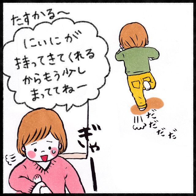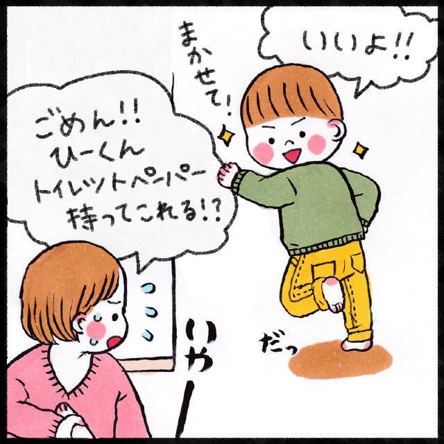 素早く困っているかーたんを助けようとトイレへ猛ダッシュ!