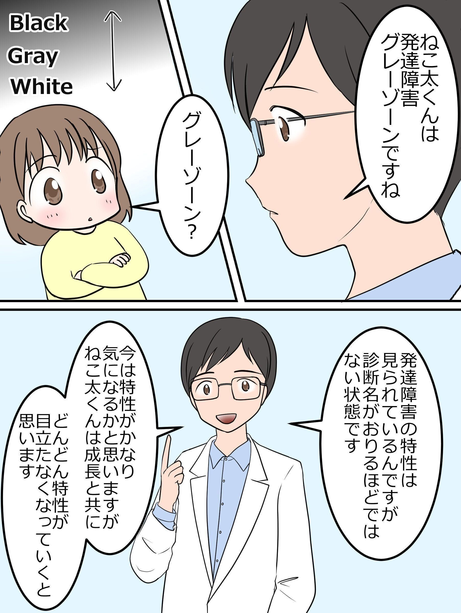 でも、医師から「グレーゾーン」と言われたことで、今までのねこ太への違和感がスッキリし、今後ねこ太とどう向き合って子育てしていくかが見えた気がします。