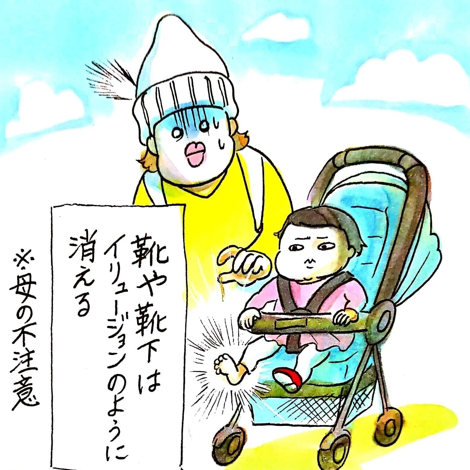 「ベビーカーに載っているときは靴が脱げやすいですよね。脱げて落ちた靴をそのままベビーカーでひいてしまうこともしばしば(笑)」