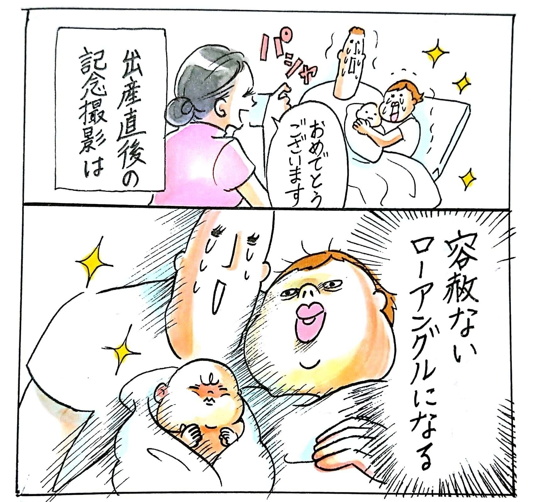 「ずっと会いたかった、おなかの中のわが子と対面できて幸せいっぱいな出産直後。この時撮影してもらった写真の自分が予想以上にひどくてびっくりしました」